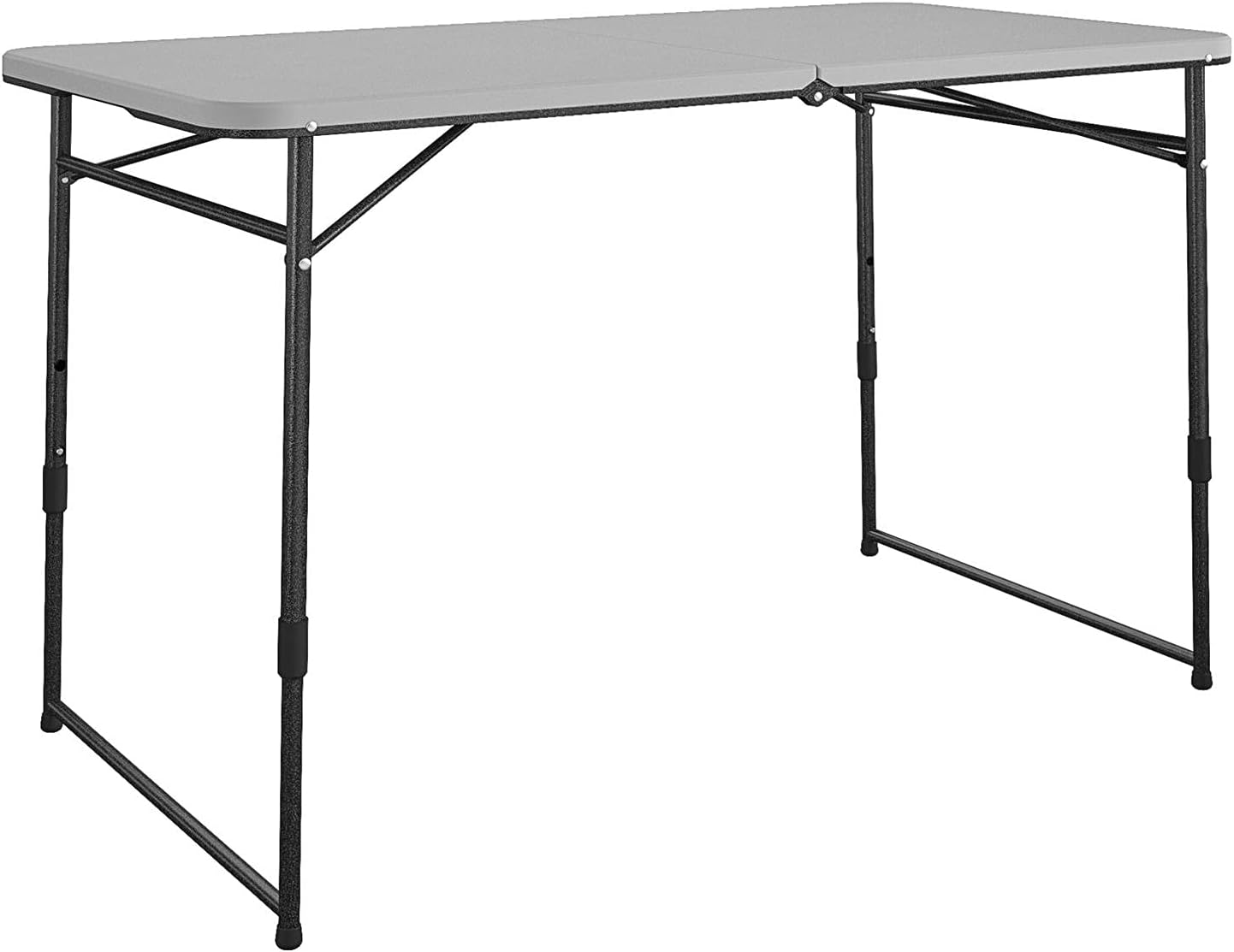- Lightweight, fold-in-half design makes this table easy to transport and carry.