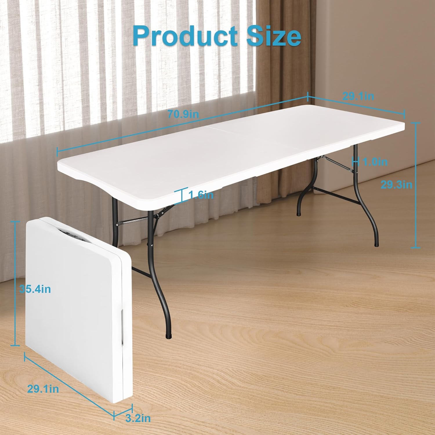6FT Folding Tables Heavy Duty Folding Table, Multi-Functional Fold up Table for Outdoor Camping Picnic Parties, Indoor Events White Training Table with 330lbs Static Weight Capacity
