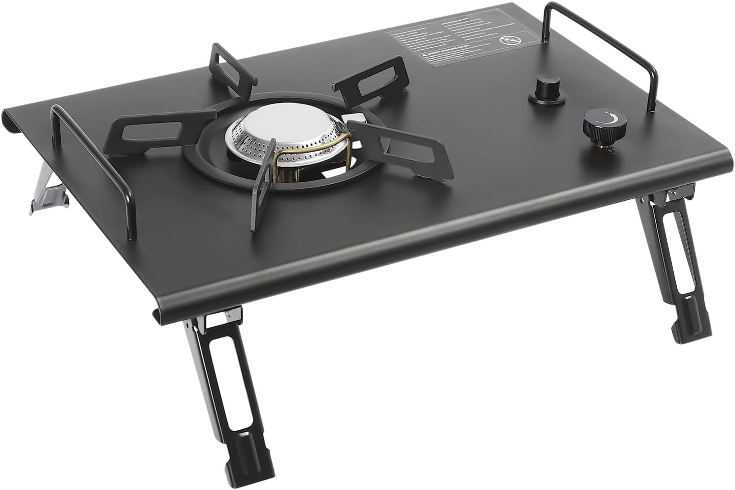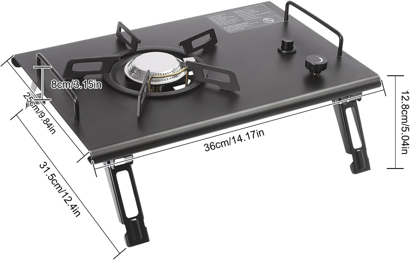 - 【Compact & Portable Design】: Featuring four foldable legs and a lightweight build, this stove easily fits into the included storage bag, making it ideal for outdoor adventures like camping, hiking, and tailgating. The carrying handle adds convenience for transportation.