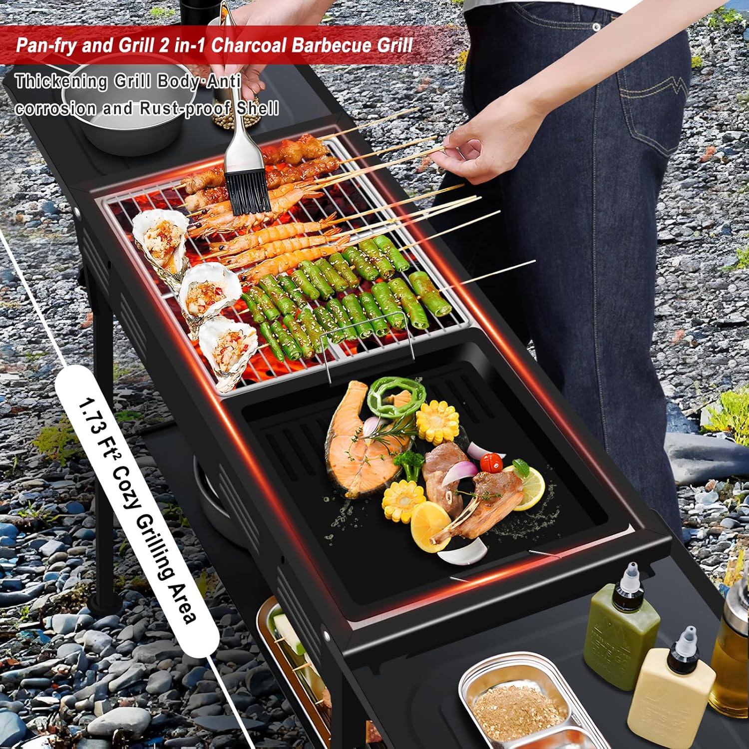 Portable Charcoal Grills for Outdoor BBQ, Foldable Kabob Barbecue Grill for Camping Hibachi BBQ Griddle Lamb Skewer in Garden Backyard Party Picnic Travel Outdoor Cooking