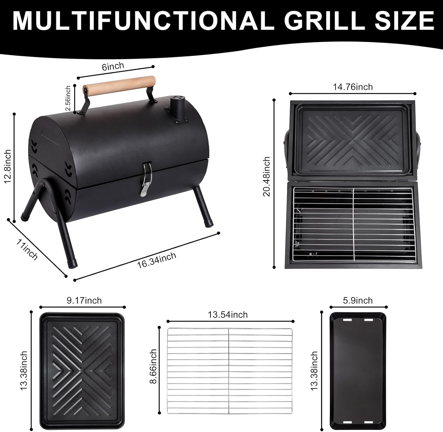 Portable Charcoal Grill,Tabletop Charcoal Grill,BBQ Grill for Outdoor Cooking Camping,Picnics,Backyard,Balcony-Black,2 Carbon Tank,2 Baking Net,1 Baking Pan